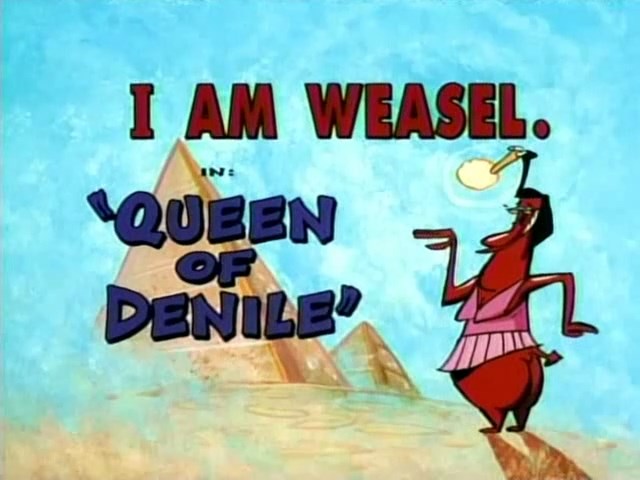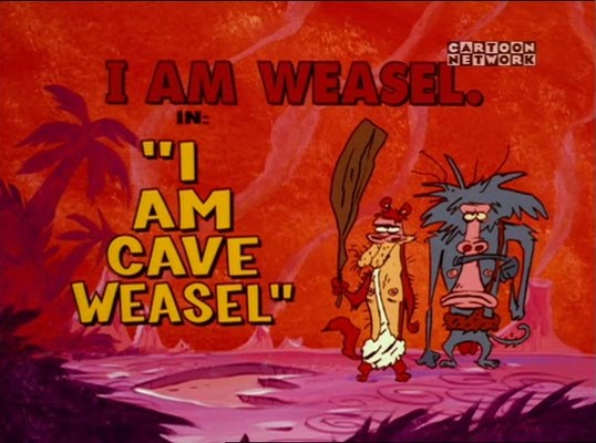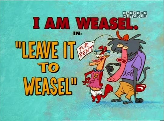 Dirty Laundry The school revamps their newspaper into a television news show with the help of Geraldo Rearviewa (the Red Guy), who uses Chicken to generate scandalous stories. Tags: Chicken, Cow, I.M. Weasel, I.R. Baboon, Red Guy